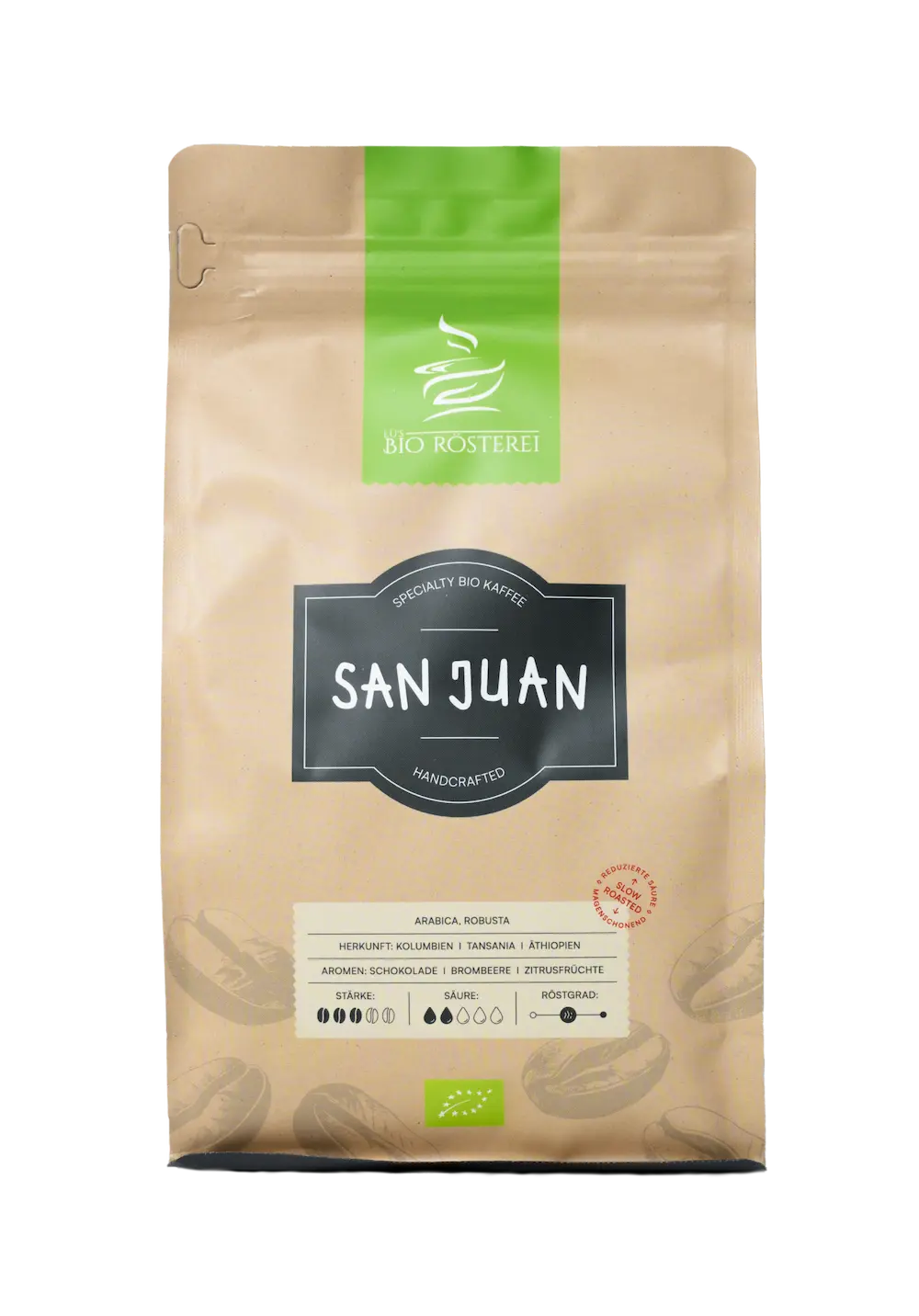 Dein Bio-Kaffee schmeckt dank unserem eigens entwickelten Slow Roasting Process © besonders bekömmlich und gleichzeitig aromaintensiv. Die Röstprofile sind so gestaltet, dass die unangenehme Chlorogensäure reduziert wird und fruchtige Noten auf eine angenehme, süsse Weise eingebunden werden.